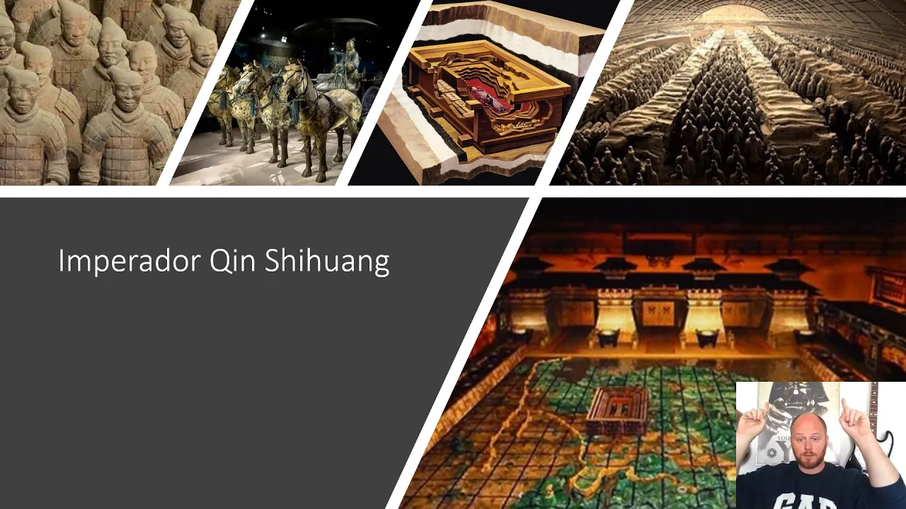 In this section, the speaker discusses the construction of a map representing unified China, the protection of Emperor Qin's tomb with a large mausoleum, and the army of terracotta warriors guarding it.