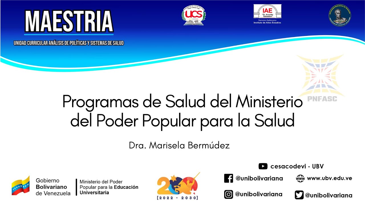 Programas de Salud del Ministerio del Poder Popular para la Salud. Dra. Marisela Bermúdez