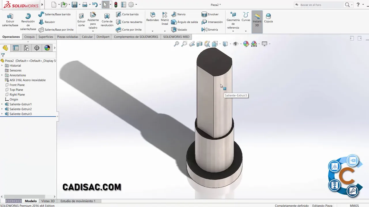 Curso SolidWorks Piezas y Ensamblaje Lección 10 Vástago