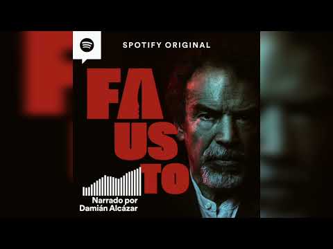 • The narration begins with "Fausto," presented by Spotify and narrated by Damián Alcázar, introducing Chapter 1 titled "A Child Bathed in Blood."