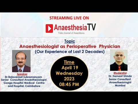 🎥 *Live Webinar* ⏰ *Day , Date and Time : Wednesday 19th March 2023 from 08:45 pm IST* 🔰 TOPIC : *Anaesthesiologist as Perioperative Physician* (Our Experience of Last 2 Decades) ➡️ Speaker : *Dr J.Balavenkatasubramanian* , Senior Consultant Anaesthesiologist, Ganga Hospital Medical Centre and Hospital, Coimbatore, India. ✅ *For detailed program please check above flyer* ⏩ *CLICK TO WATCH ANY ONE OF THE FOLLOWING LINK :* 🔺 *Media Partner : ANAESTHESIA TV* 🖥️ *Live Streaming on *www.anaesthesiatv.com* 🤝🏻 *Join Anaesthesia TV* : https://bit.ly/Anaesthesia-TV 🌎 *Anesthesia TV Linktree* : https://linktr.ee/anaesthesiatv