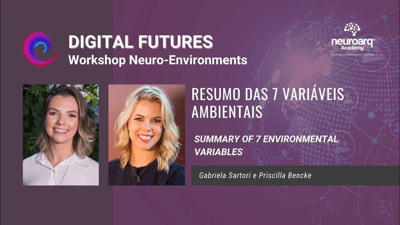 Dia 3 - Resumo das 7 variáveis ambientais Ministrada por Gabi Sartori e Priscilla Bencke, esta palestra faz parte do 1º Workshop Despertando aos Ambiente do DIGITAL FUTURES WORLD ARCHITECTS UNITE - NEURO-ENVIRONMENTS WORKSHOP! - Given by Gabi Sartori and Priscilla Bencke, this lecture is part of the 1st Awakening to the Environment Workshop at DIGITAL FUTURES WORLD ARCHITECTS UNITE - NEURO-ENVIRONMENTS WORKSHOP!