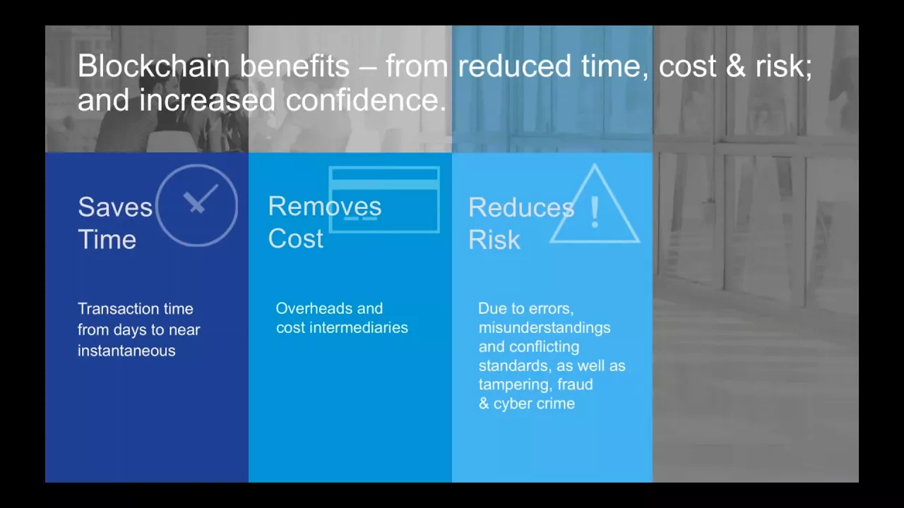 - Shorter cycle times, lower costs, increased confidence are common benefits of implementing blockchain.