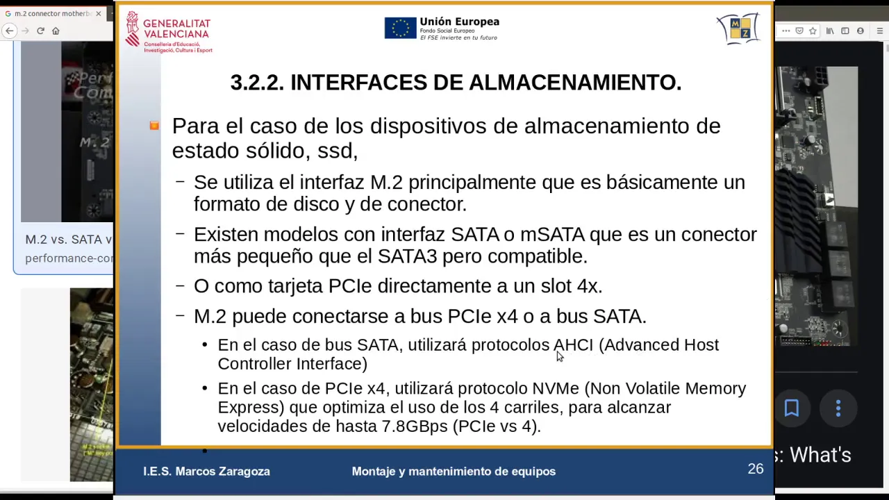 The speaker explains that the M.2 connector is not a bus but rather a connector on the motherboard. They discuss how it connects to the CPU and show images of M.2 connectors on motherboards.