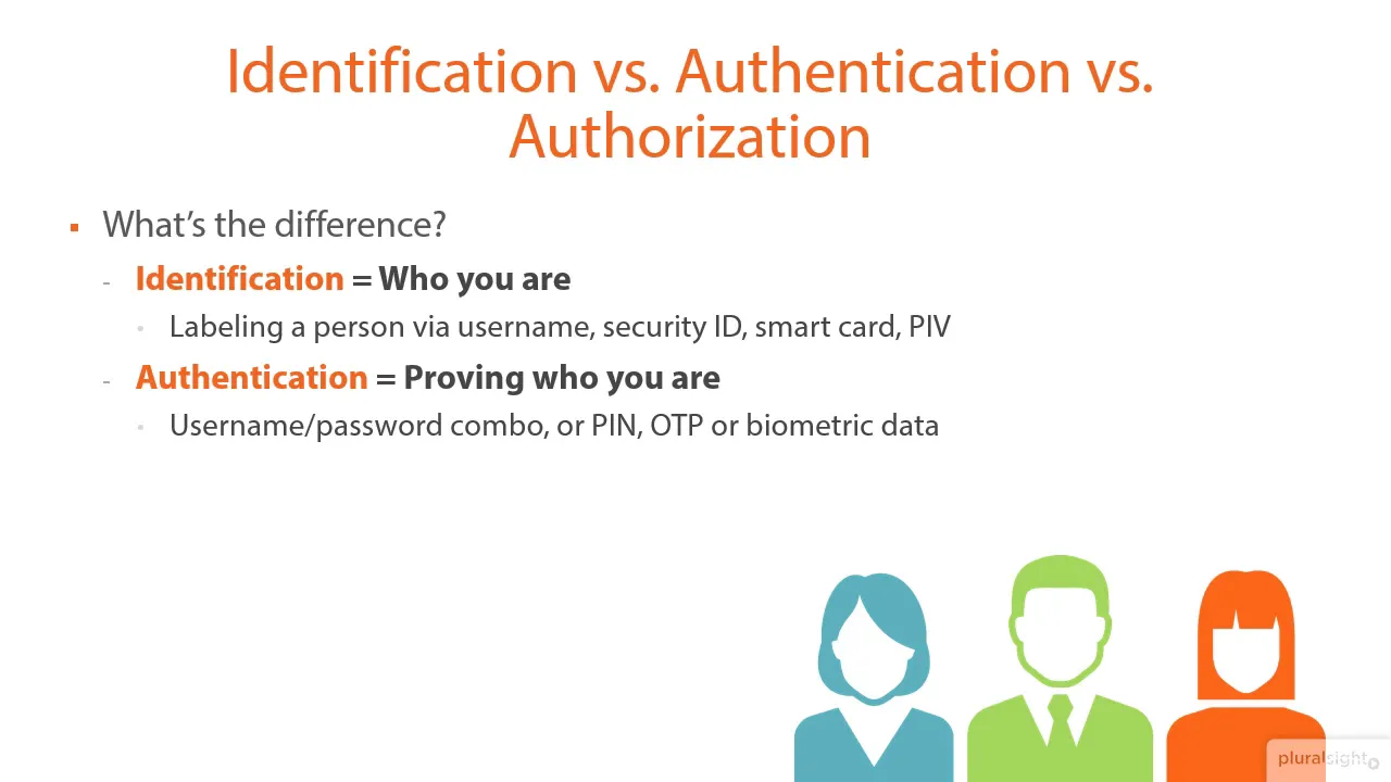 - It involves labeling a person with a username, security ID, smart card, or PIV.