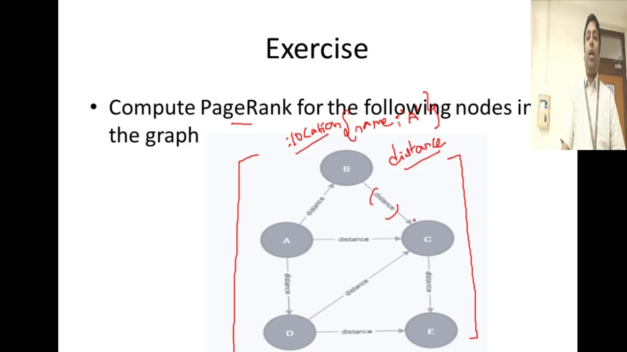 - 그래프에는 노드 A, B, C, D, E가 있으며 모든 노드에 위치라는 레이블이 정의되어 있음.