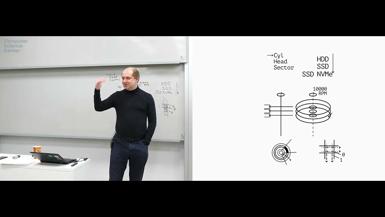 Лекция включает в себя 2 больших темы: устройство жесткого диска, включая подробное физическое устройство носителей и методы хранения информации на них. И виртуальную память. Проводится аналогия между виртуальной памятью и кэшем, рассматривается связь между виртуальными и физическими страницами. Лектор: Кирилл Кринкин Другие полезные материалы: https://online.osll.ru/useful